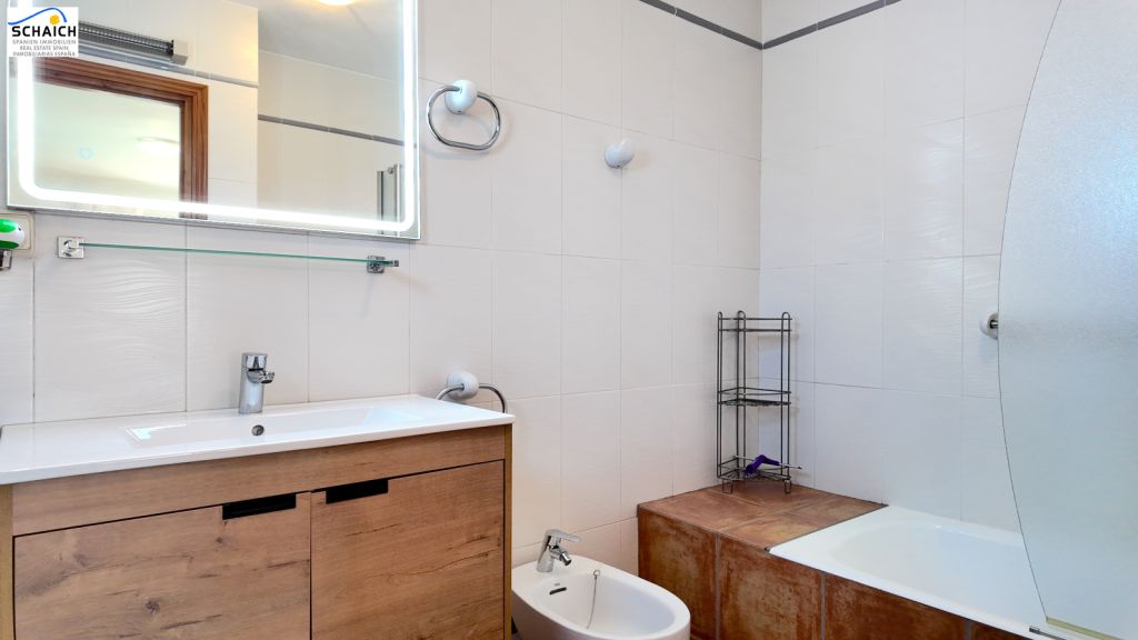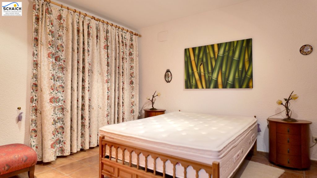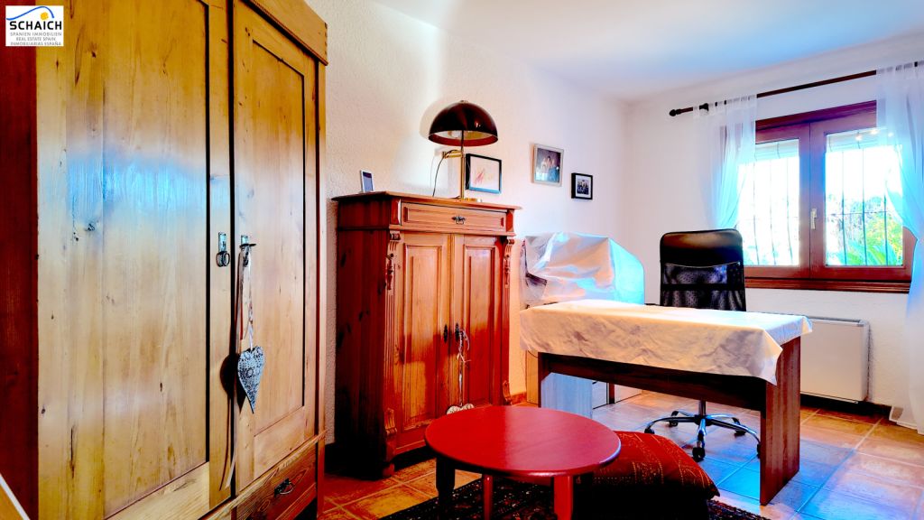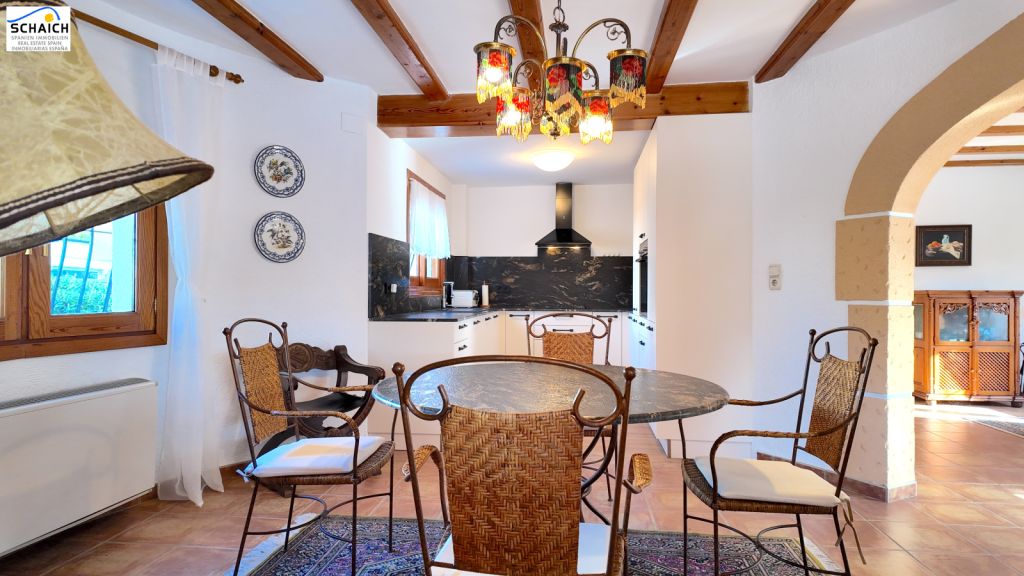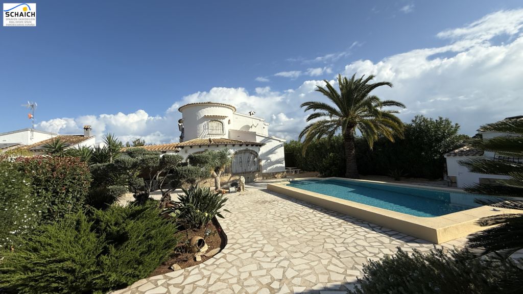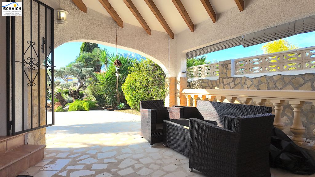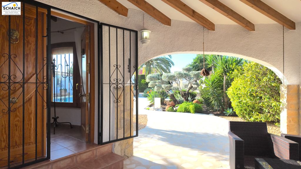 The villa features a modern Nolte kitchen and 2 gas fireplaces installed in the living rooms. It is heated and cooled via a special heat pump, and the pool can be heated for year-round enjoyment.Very nice residential area, quiet and sunny. In the immediate vicinity there are DIY stores, shops, cafés, petrol stations, restaurants, etc. The beach is about 1.2 km away and can be easily reached on foot or by bike.Masonry construction, ceramic floors, wooden windows, wooden doors, security grilles, roller shutters, 2 gas fireplaces, heat pump for heating and cooling, Nolte fitted kitchen, built-in wardrobes, heated pool (recently retiled), carport, parking space, electric entrance gate, various outbuildings, covered solid pergola, beautiful garden, outdoor lighting, and much more.The furniture is partially included in the price. The property’s documentation is completely up to date and in order. A notary appointment can be arranged at short notice.