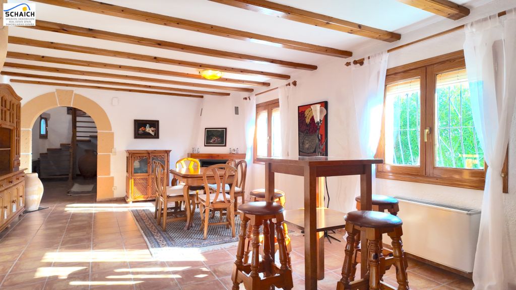 The main house, spread over two floors, has 2 spacious living rooms, a dining room, 3 bedrooms, 2 bathrooms, a separate WC, and a fully equipped kitchen. From the outside, a staircase leads to a tower apartment with 1 bedroom and 1 bathroom. In total, the villa offers 4 bedrooms and 4 bathrooms, with a total usable and living area of 232 m².