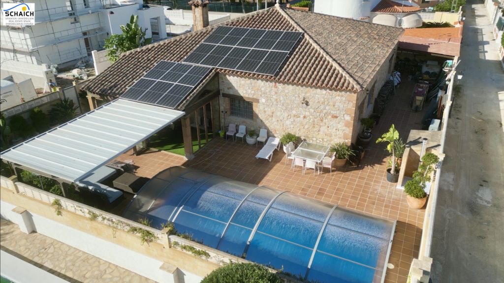 High-quality finishes include solid wood ceilings and doors, PVC double-glazed windows, and elegant interiors filled with natural light. Outside, several terraces (including a glazed one), a pergola, and parking for up to three vehicles complete this exceptional property. Its sustainable design, high-end features and generous proportions fully justify its exclusivity and price, offering a prestigious year-round residence.The villa is located in Els Poblets, just 750 meters from the beach, 9 km from the vibrant coastal town of Dénia with its marina, restaurants and full range of services, and only 5 km from the Portal de la Marina shopping center in Ondara. An ideal location combining residential tranquility with easy access to all amenities and leisure.16 solar panels for electricity supply
