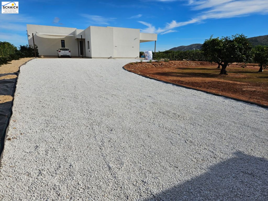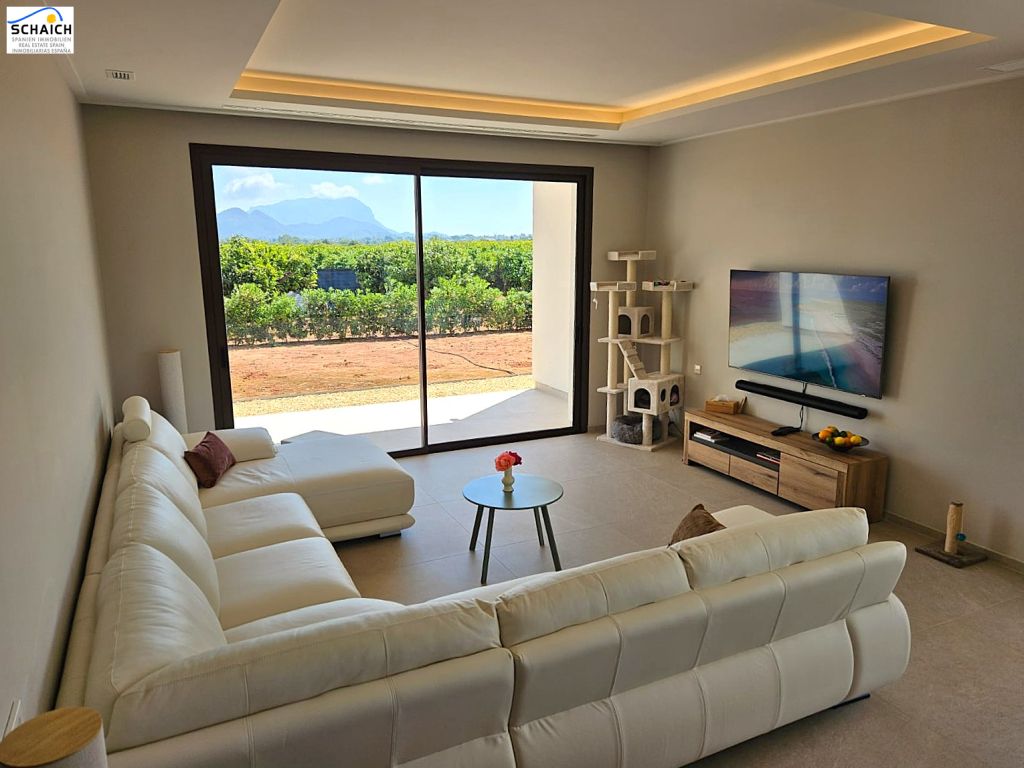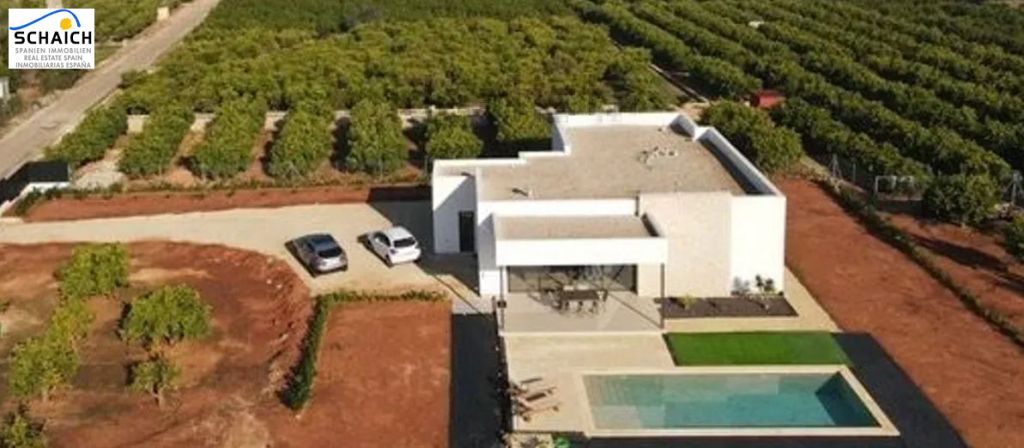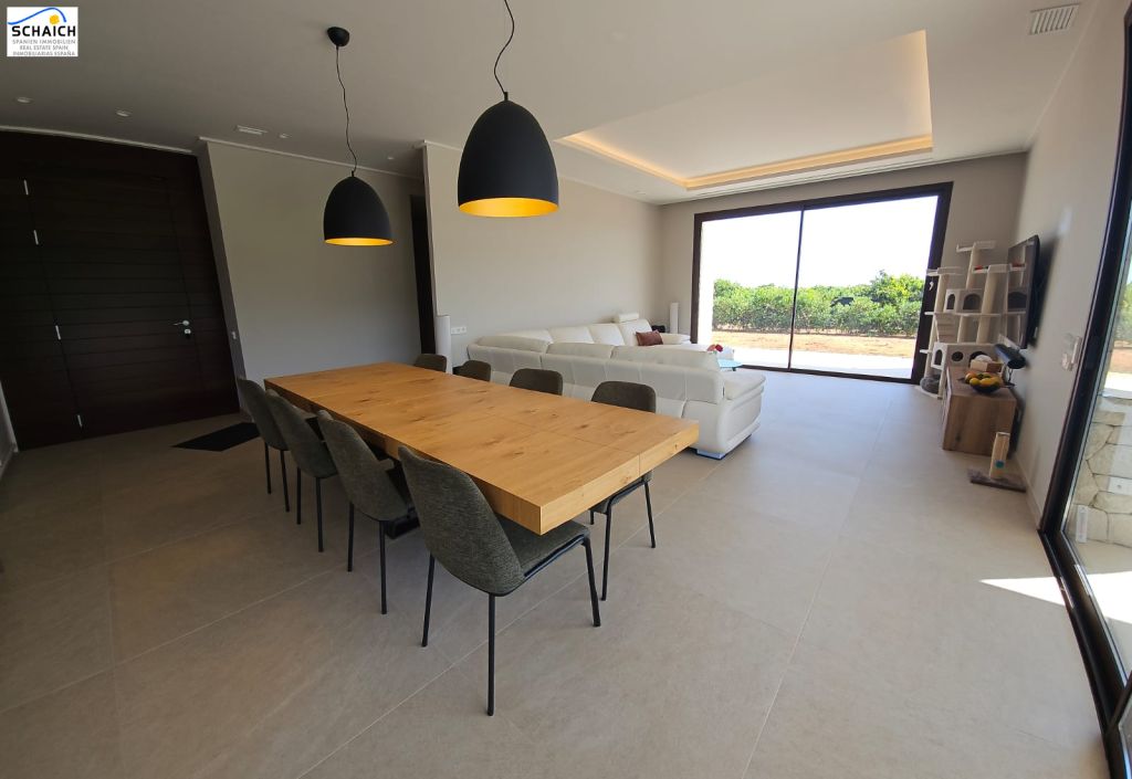Exclusive luxury villa for sale from 2023, surrounded by a unique landscape of orange groves.The villa is located in Beniarbeig and enjoys a privileged location: just 5 minutes from the Ondara shopping center, 7 minutes from the AP7 motorway, 16 minutes from Jávea, 12 minutes from Dénia and its beaches, and approximately one hour from the airports of Valencia and Alicante. It is situated in a very quiet area and has all the necessary building permits, as well as connections for electricity, water, internet, alarm system, and cameras.
