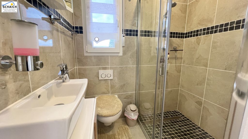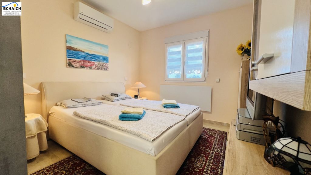 This attractive house in Els Poblets impresses with its well-designed floor plan, versatile usage options and sought-after location near the coast – ideal as a holiday home, investment property or permanent home under the Spanish sun. The ground floor features two bedrooms, two bathrooms and an open-plan living and dining room with adjoining kitchen. A particular bonus is the separately usable upper floor:here you will find a spacious bedroom with en-suite bathroom and an integrated kitchenette – perfect as a guest area, granny flat or for lucrative holiday rentals.The property is quietly located in a small cul-de-sac in the popular town of Els Poblets. Supermarkets, restaurants and many other amenities are just a few minutes away. The shopping centre in Ondara is a 10-minute drive away and the international airports of Valencia and Alicante are approximately an hour's drive away.Solid construction, infrared heating, air conditioning, double-glazed PVC windows, garage, pool, photovoltaic system, sewer connection